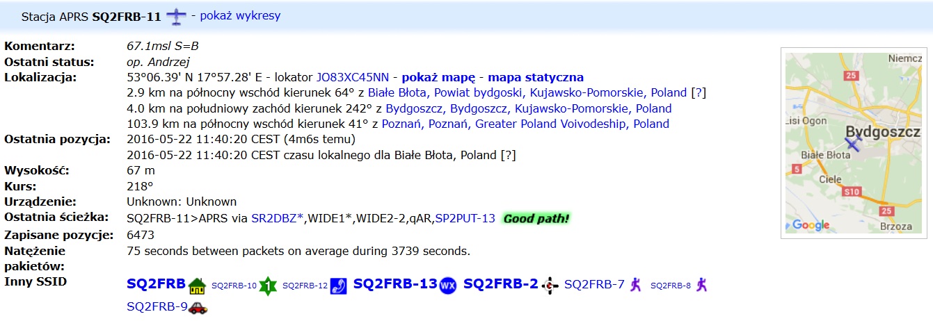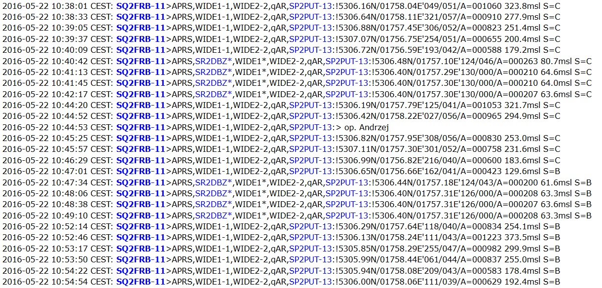 Gorąco zachęcam do odbioru ramek APRS wysyłanych przez Andrzeja SQ2FRB z szybowca.
