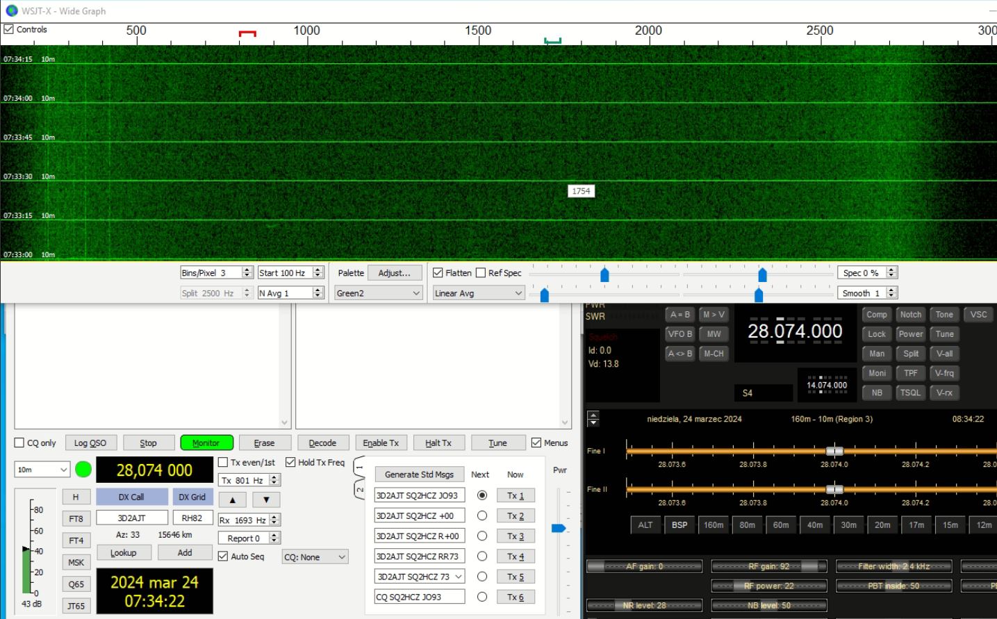 Sytuacje znakomicie obrazuje wycinek pasma 10m dla emisji FT8. Totalna cisza.