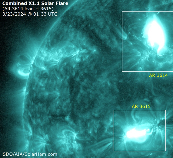 W sobotę 23 marca doszło na Słońcu do podwójnego rozbłysku klasy X1. Rozbłyskom towarzyszył koronarny wyrzut macy skierowany w kierunku Ziemi. Zjawiska te wywołały burzę magnetyczna i zakłócenia w łączności radiowej. Znakomitą ilustracją jest na chwilę obecną (niedziela godzina 8:30 czasu lokalnego) propagacja na pasmie 10m. Aktywne zwykle o tej porze pasmo w kierunku wschodnim, jest zamknięte dla całej Europy.